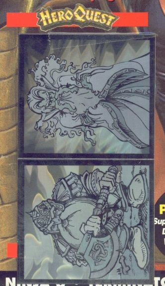 Heroquest hologram stickers from CF15, to tie in with the review of a long-awaited C64 version. Which Gremlin did a pretty neat job of.