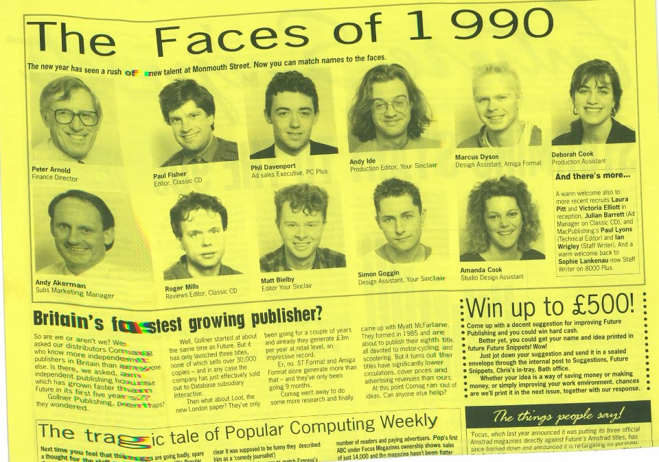 Future’s internal newsletter, featuring the “Faces Of 1990”. Future moved to is famous Monmouth Street offices in Bath over New Year 1989/90. The building was supposed to be big enough to house new magazines for a few years to come. But it was full within 7 months as new staff and titles were aggressively launched. That included, of course, Commodore Format in the Autumn.