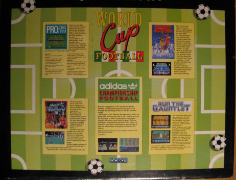 The sport themed pack only had one footy game: Ocean’s disaster Adidas Championship Football, one of many Italia ’90 cash-ins that year. Also in the box was Beach Volley, Basket Master, Pro Tennis Tour and Run The Gauntlet along with two sticks and a datasette. It’s a disappointing bundle compared to The Light Fantastic, but 139 coins for a Commodore wasn’t bad.