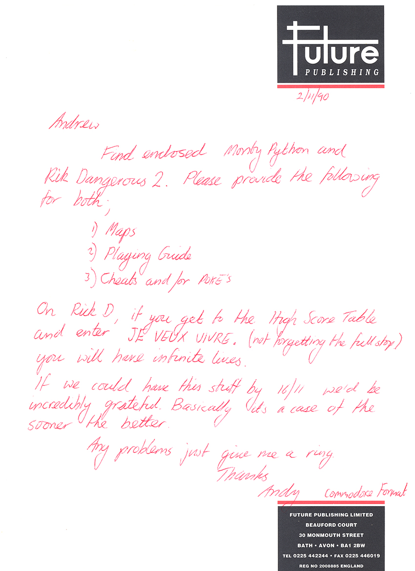 Andy Dyer sends Andy Roberts some more games…and work. Eventually one Andy would replace the other at the helm of Gamesbusters.