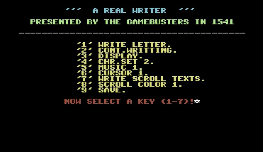 You’ll find REEL WRITER at the start of August 1993’s cassette offering, which you can use to create fancy scrolling messages for your own demos and games. Select your character set, choose some music, type whatever you want and bosh. Old timers might remember we used to call this sort of thing a Noter: