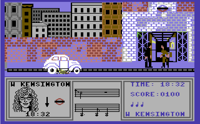 You spend most of the game in a car navigating a top down map of London which is actually terrifically accurate (reviews of the time said you’d find the game easier if you know the city well). Using your “car computer” and clues in the manual, you have to grab the band members as they emerge from Tube stations. Every person you find equals a small piece of music. Get all seven pieces and you can drive off to the recording studio to assemble the song again. In a brutal twist, should you fail in the time limit some bootleggers will publish the original song and you’re reduced to busking to pay off the recording bill. That isn’t the only bit of comedy in the game: your biggest enemies are traffic wardens, who’ll give you a ticket if you park outside the Tube station for too long.