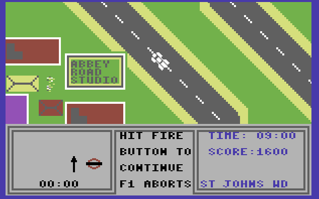 So here’s Abbey Road, which actually matches up with where you’d find it in London on the map. The makers claimed there were over 900 screens of the capital in this game.