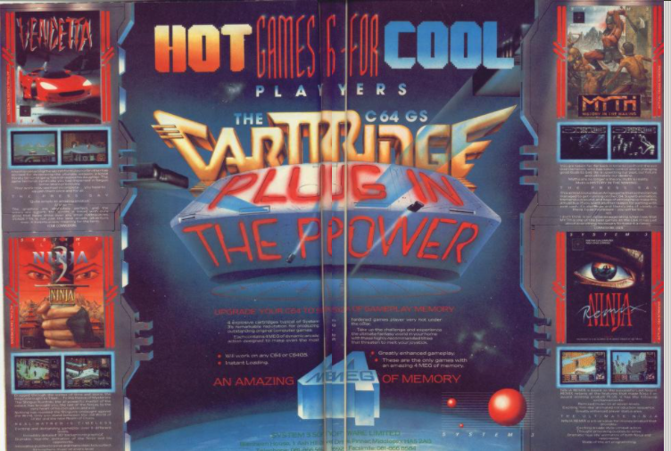 Sadly, when the console system’s awful Christmas sales were revealed further cartridges from System 3 were abandoned and everything switched back to cassette and disk. That included a tape version of Ninja Remix (so much for “impossible”). What appears to be a review cartridge of Last Ninja 3 did get as far as the mags, which Your Commodore promptly had a seizure over and awarded 100%. It only reached the public in tape and disk form, as did the super exciting Turbocharge (that one even has cartridge loading instructions in the manual). They’re both exceptional games, with Turbocharge‘s handling of roads particularly impressive (look closely and you’ll see that to achieve the effect you control the road, not the car). Yet both were also clearly designed with cartridge in mind and could’ve been even more fun, which makes System 3 the GS’s most tragic casualty.