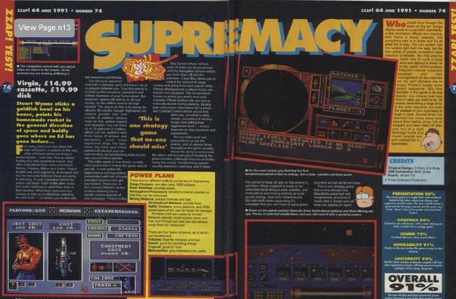 You overtook ZZAP! so quickly. Comparing CF1 from October 1990 with the same month’s ZZAP! is like looking at magazines from different ages. The response from Ludlow seemed to be to try and emulate what you were doing. [CF writer] Andy Roberts has told us how annoyed designer Lam Tang was that ZZAP! were nicking his signature wavy style. And the ZZAP! review of Supremacy could almost be shot for shot from CF… Oh Supremacy, yeah that made us chuckle. We were amazed they would copy us so blatantly. I think it’s incredibly unprofessional to do so, and simply shows a total lack of imagination and lack of respect for your own readers. When they did it I knew we had them beaten. If I remember correctly, I think we contacted them and told them which fonts we were using so they could get it right!