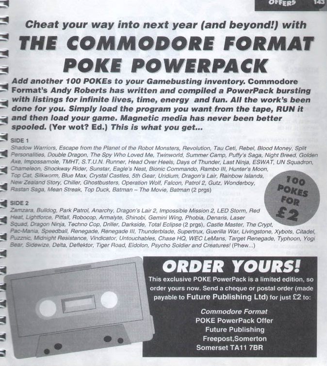 The back of the diary offered readers 100 of Andy Roberts’ famous cheats for just two quid! No more data errors for you thanks to the CF Poke Powerpack!